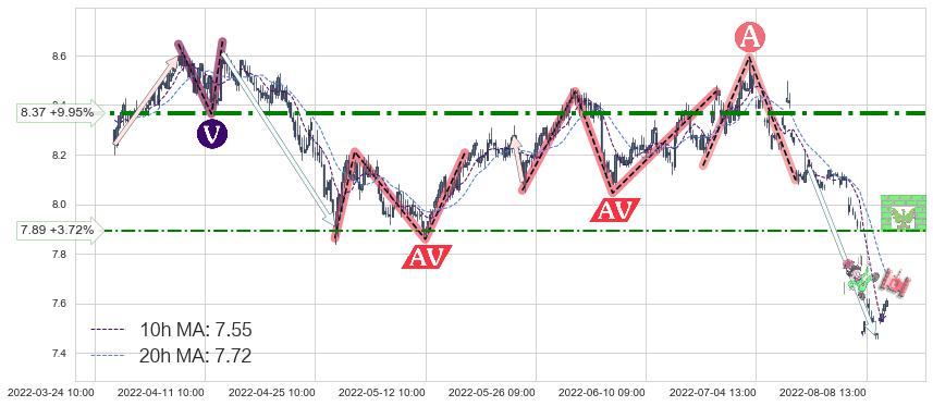 ♞ 10小时均线:7.55,20小时均线:7.72→ 快线<慢线