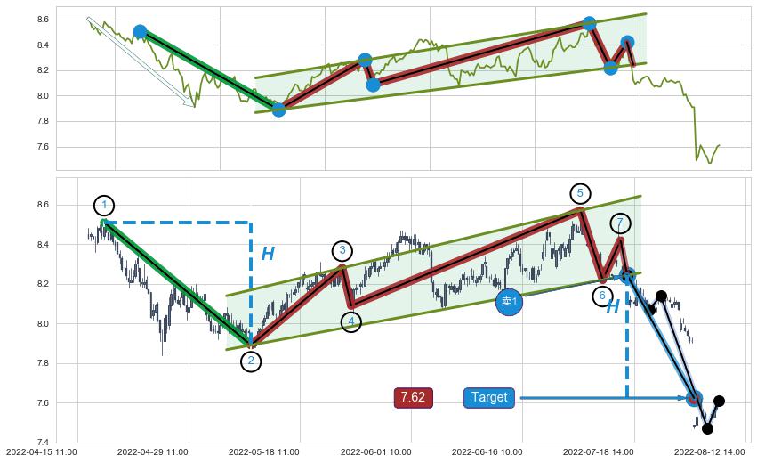 ➢ 【已达成】最小【整理】第一目标价格→(08-05:13: 7.62 ), 后续继续【整理】下跌动力依然存在,下跌空间适中