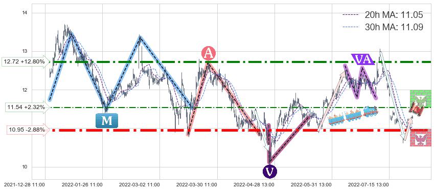 ♞ 20小时均线:11.05,30小时均线:11.09→ 快线<慢线