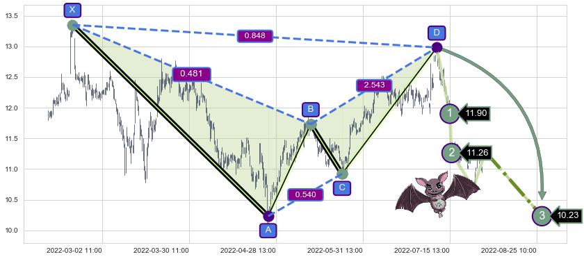 ➣ 已完成【蝙蝠】形态起点X: 02-21:13, 终点D: 07-05:14, 共420交易小时