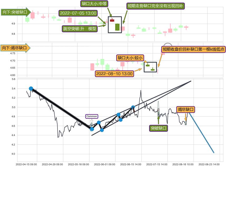 ➢ 2022-08-10 13:00形成:向下跳空【竭尽】缺口