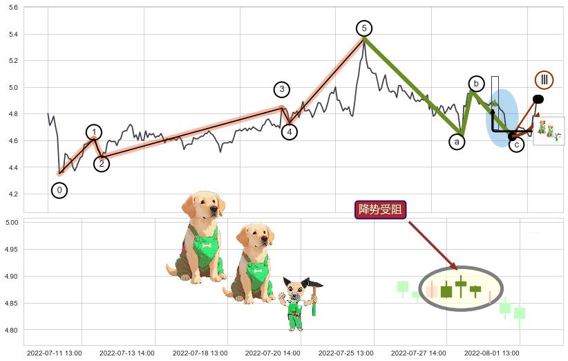 ♘ 支撑价格位4.55,可信任强度70.81%,距离最后交易2022-08-12 14:00形成的收盘价格4.91相差 -7.34%