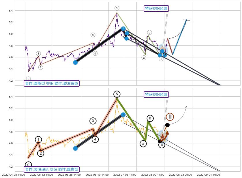 ➣ 【仅预测突破】最后价格:4.91与预测突破价格:4.64→【空间临近】后续最小【反转】第一目标价格→(08-22:11: 4.01 )