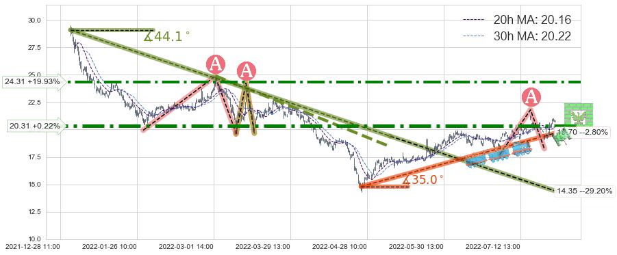 ♞ 20小时均线:20.16,30小时均线:20.22→ 快线<慢线