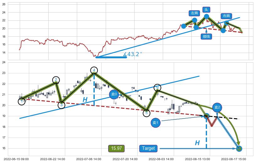 ➣ 最小反转跌幅→𝐇: 3.021 (头部与颈线垂直距离)