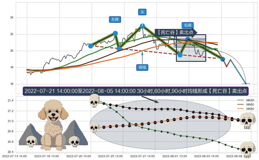 | 7 🅚:下跌两颗星 | 下跌三颗星 ➕ 🎢:【死亡谷】卖出点均线组合卖出点信号形成后,猜想后续破位下跌,沿着向下的尖头三角下跌 ☞ 看空信号 ⇥ 【均线】交织【🅚线】⇥ 综合量化分数: 48 | > |