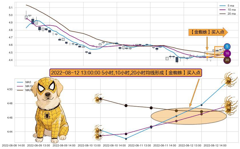 ⚀ 2022-08-12 13:00:00小时显现 5小时-10小时-20小时均线 【金蜘蛛】买入点 看多信号,后市看涨,买入