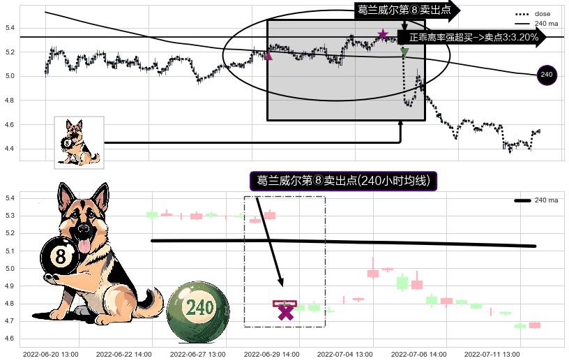 ⚁ 240小时均线 第⑧卖出点 属于 均线服从 信号,属于趋势运行的【常态】即信号期望为下降趋势的中继