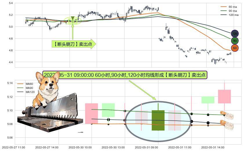 ⚀ 2022-05-31 09:00:00小时显现 60小时-90小时-120小时均线 【断头铡刀】卖出点 看空信号,后市看跌,卖出
