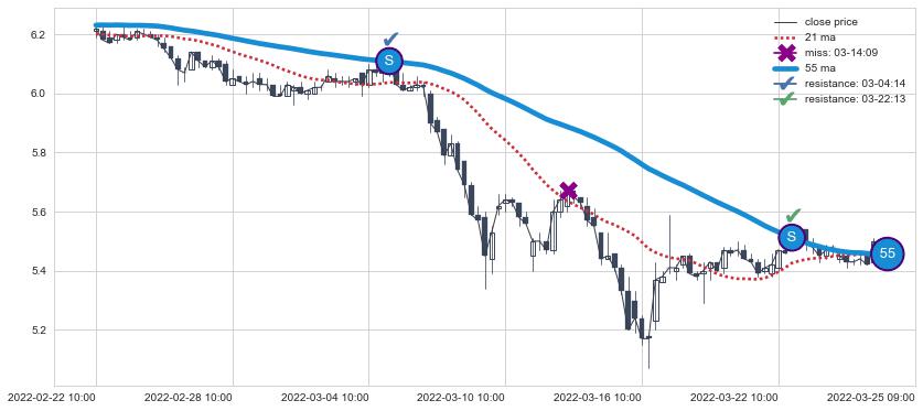 ⚂ 2022-06-02 13:00:00-小时均线向上突破,2022-06-29 13:00:00-小时重新下穿均线破位,均线阻力再次生效