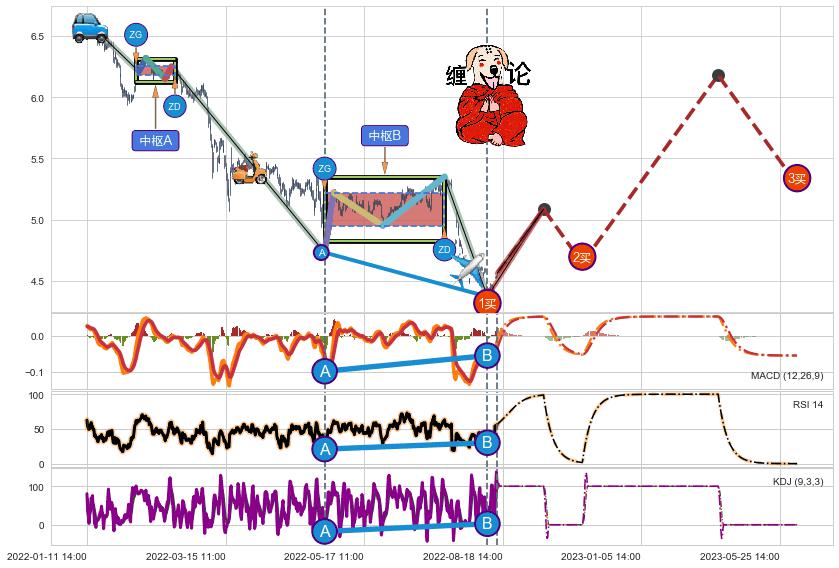 | 7 🅚:【高山滑雪】买入点 ➕ ☯️:缠论买卖点下降缠中枢AB形成后猜想拐点1买已到达,猜想后续持续拉升(均值回复) ☞ 看多信号 ⇥ 【均线】交织【图形】⇥ 综合量化分数: 52 | > |