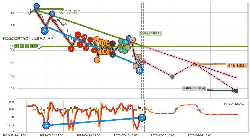 ➣ 预测:2023-02-22 13:00,【试探阻力】稳定目前下跌趋势的前提下,预测价格:4.48