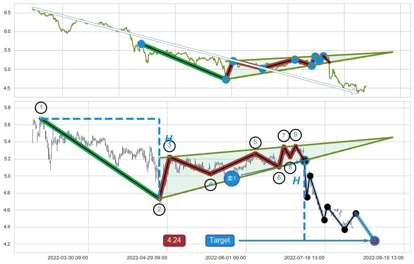➣ AI预测: 假定反转启动后, 第❶目标位置(07-14:13, 5.40)