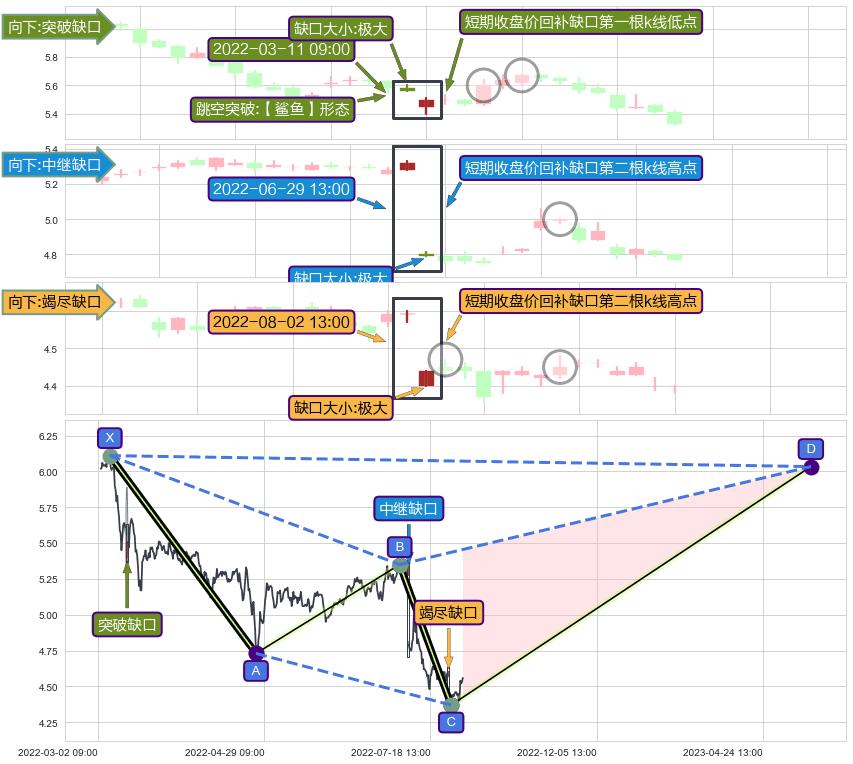 ➢ 2022-08-02 13:00形成:向下跳空【竭尽】缺口