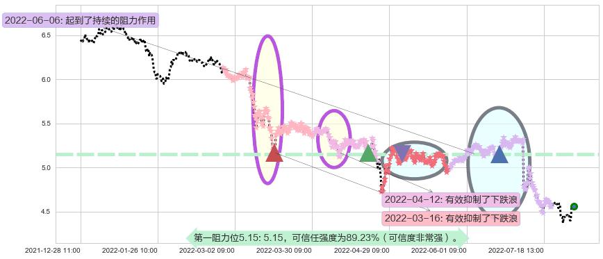 ♘ 阻力价格位5.15,可信任强度89.23%,距离最后交易2022-08-12 14:00形成的收盘价格4.56相差 +12.96%