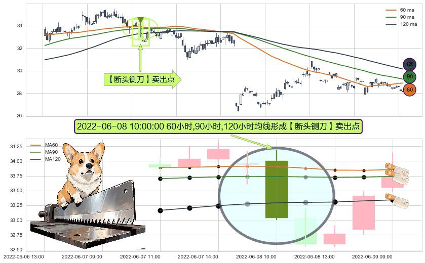 形态多维评估: ⚀ 2022-06-08 10:00:00小时显现 60小时-90小时-120小时均线 【断头铡刀】卖出点 看空信号,后市看跌,卖出