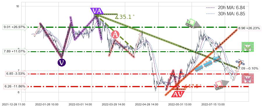 ♘ 阻力价格位7.89,可信任强度61.71%,距离最后交易2022-08-12 14:00形成的收盘价格7.10相差 +11.07%