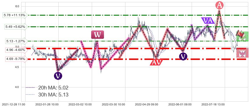 ♞ 20小时均线:5.02,30小时均线:5.13→ 快线<慢线
