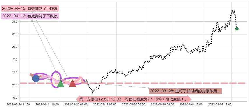 2022-04-15: 第一支撑位12.83有效抑制了下跌浪,成功阻止了价格的继续下跌。