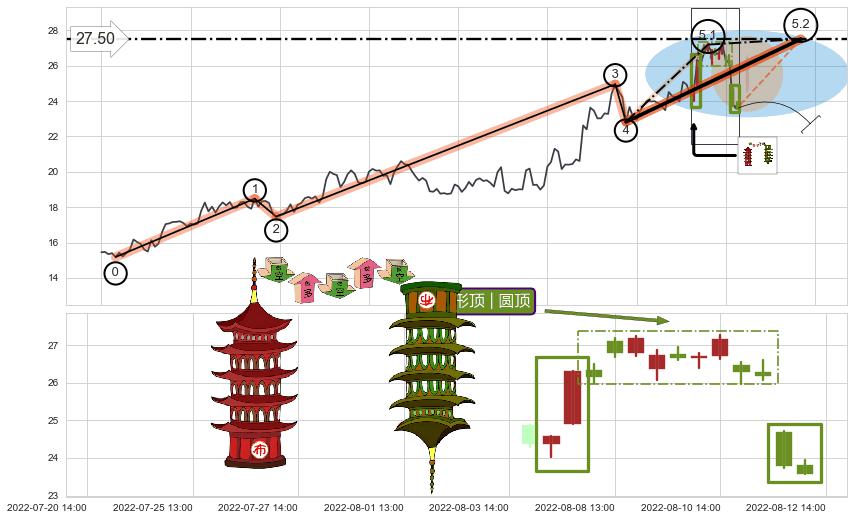 ➣ 5.1: 预测当前第5浪位置(08-08:14, 27.19),仍然有上升空间