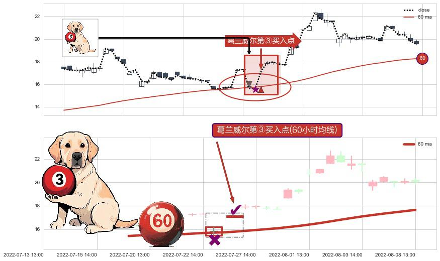 形态多维评估: ⚀ 2022-07-26 13:00:00-小时显现 葛兰威尔均线 60小时均线 第③买入点 上升趋势的中继信号,后市看涨,买进信号