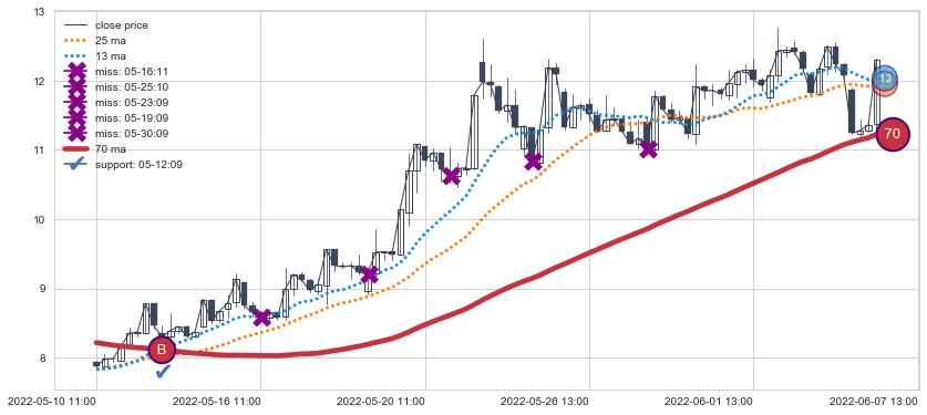 上涨趋势05-10 11:00-06-07 13:00,均线70确认关键支撑1处