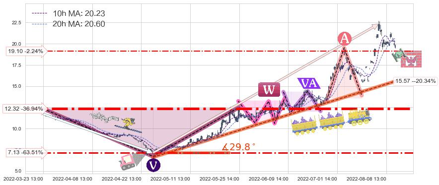 ♘ 支撑价格位19.10,可信任强度36.39%,距离最后交易2022-08-12 14:00形成的收盘价格19.54相差 -2.24%
