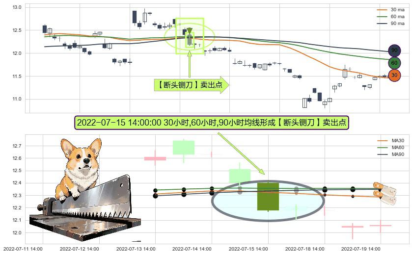 ⚀ 2022-07-15 14:00:00小时显现 30小时-60小时-90小时均线 【断头铡刀】卖出点 看空信号,后市看跌,卖出