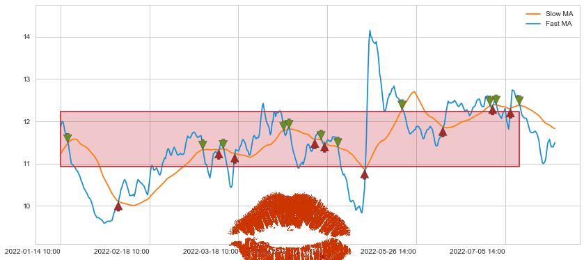01-14 10:00至07-15 14:00 慢线与快线多次接触,存在上下穿越,有缠绕