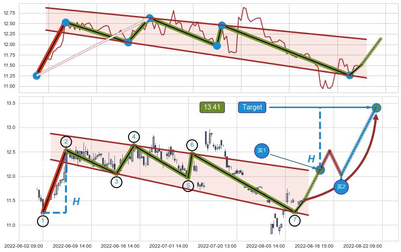 ➣ AI预测: 假定反转启动后, 第❸目标位置(08-25:09, 10.94)