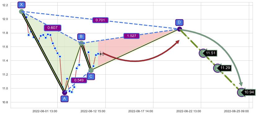 ➣ D点拟合预测价格11.86,距离最后交易收盘价格11.51相差 +3.00%