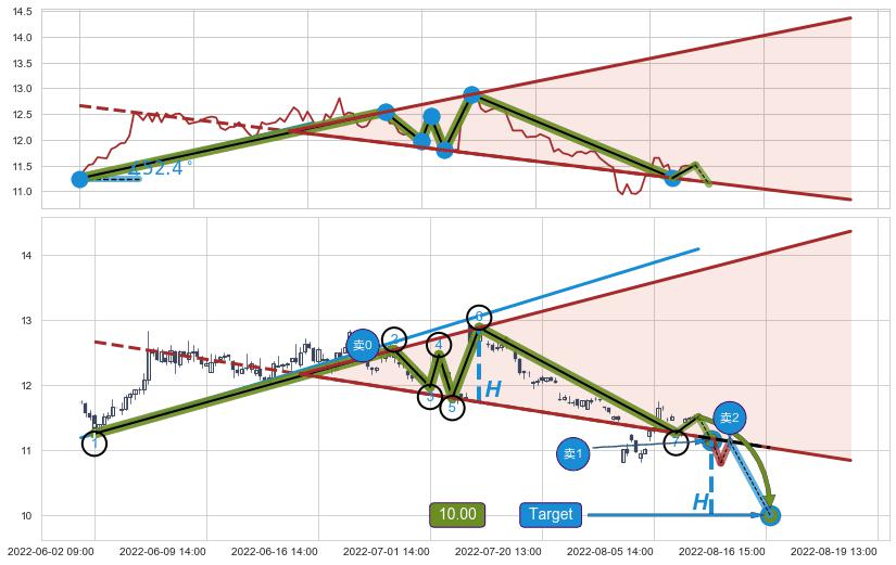➢ 【仅预测突破】最后价格:11.51与预测突破价格:12.13→【空间中等】后续最小【整理】第一目标价格→(08-22:09: 13.41 )