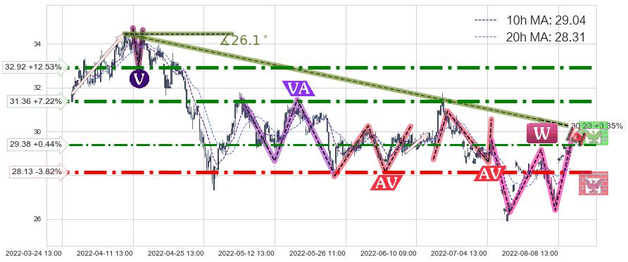 ♘ 阻力价格位32.92,可信任强度92.30%,距离最后交易2022-08-12 14:00形成的收盘价格29.25相差 +12.53%