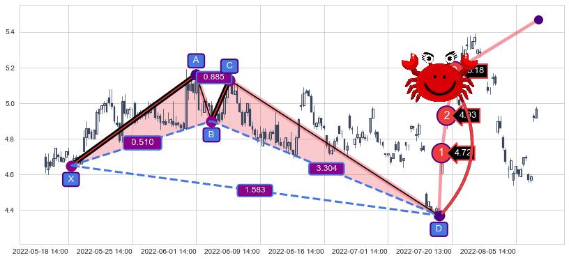 ➣ 已完成【螃蟹】形态起点X: 05-19:09, 终点D: 07-15:14, 共145交易小时