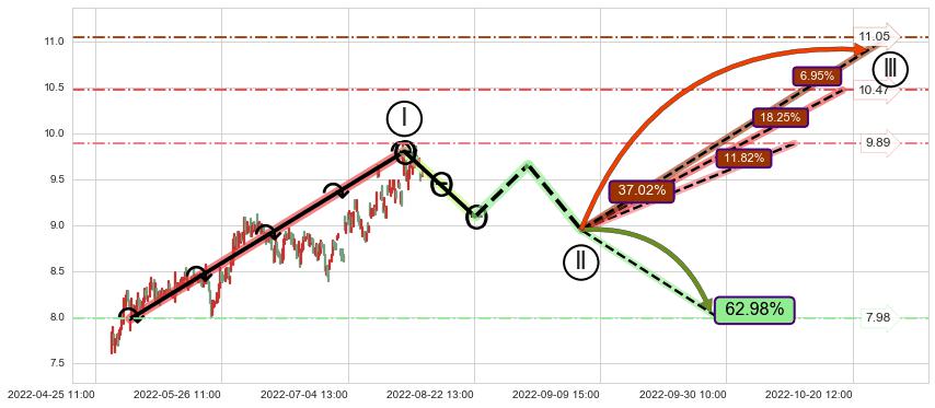 ➢ 循环浪继续向上【最低】位置(10-11:15, 9.89),匹配聚类样本比例31.93%, 可能性概率11.82%