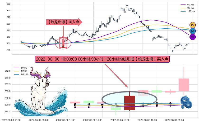 形态多维评估: ⚀ 2022-06-06 10:00:00小时显现 60小时-90小时-120小时均线 【蛟龙出海】买入点 看多信号,后市看涨,买入