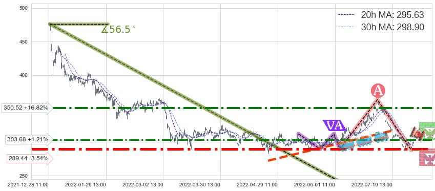 ♘ 支撑价格位289.44,可信任强度96.67%,距离最后交易2022-08-12 14:00形成的收盘价格300.06相差 -3.54%