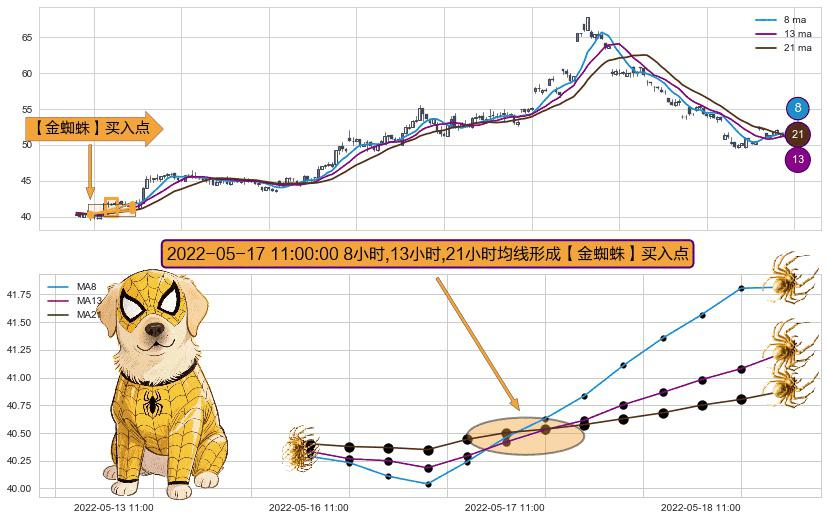 形态多维评估: ⚀ 2022-05-17 11:00:00小时显现 8小时-13小时-21小时均线 【金蜘蛛】买入点 看多信号,后市看涨,买入
