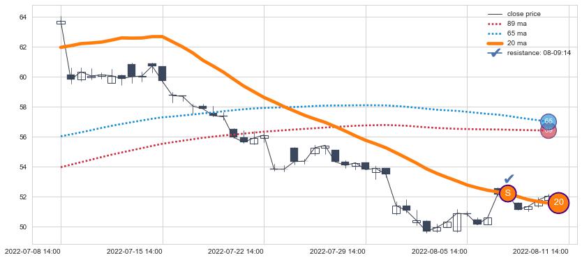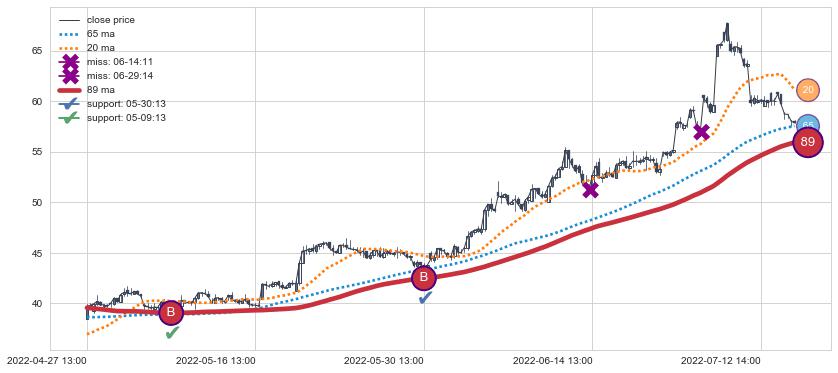 上涨趋势04-27 13:00-07-19 14:00,均线89确认关键支撑2处