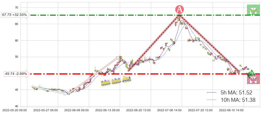 ♘ 支撑价格位49.74,可信任强度72.72%,距离最后交易2022-08-12 14:00形成的收盘价格51.12相差 -2.69%