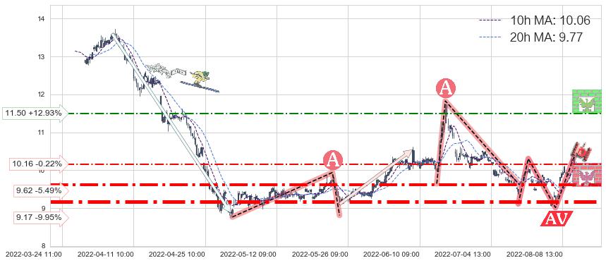 ♘ 阻力价格位11.50,可信任强度48.40%,距离最后交易2022-08-12 14:00形成的收盘价格10.18相差 +12.93%