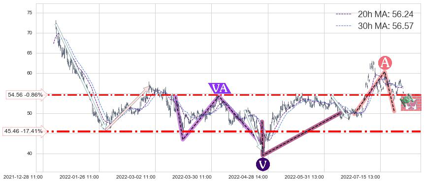 ♞ 20小时均线:56.24,30小时均线:56.57→ 快线<慢线