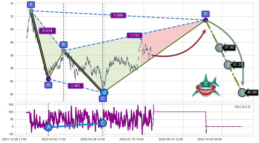 ➣ D点拟合预测价格68.61,距离最后交易收盘价格55.04相差 +24.66%