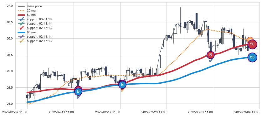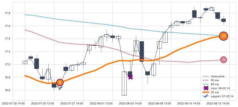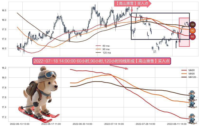 ⚀ 2022-06-21 14:00:00小时-2022-08-12 14:00:00小时显现 60小时-90小时-120小时均线 【高山滑雪】买入点 看多信号,后市看涨,买入