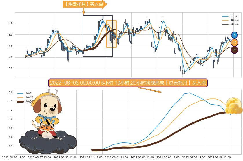 ⚀ 2022-05-31 10:00:00小时-2022-06-08 13:00:00小时显现 5小时-10小时-20小时均线 【烘云托月】买入点 看多信号,后市看涨,买入