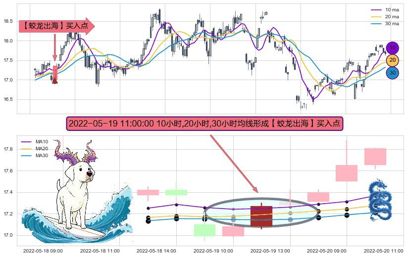 ⚀ 2022-05-19 11:00:00小时显现 10小时-20小时-30小时均线 【蛟龙出海】买入点 看多信号,后市看涨,买入