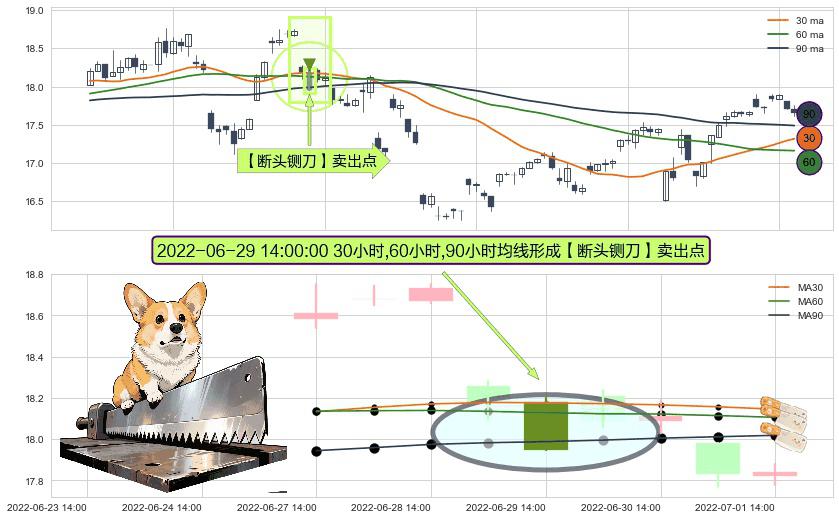 ⚀ 2022-06-29 14:00:00小时显现 30小时-60小时-90小时均线 【断头铡刀】卖出点 看空信号,后市看跌,卖出