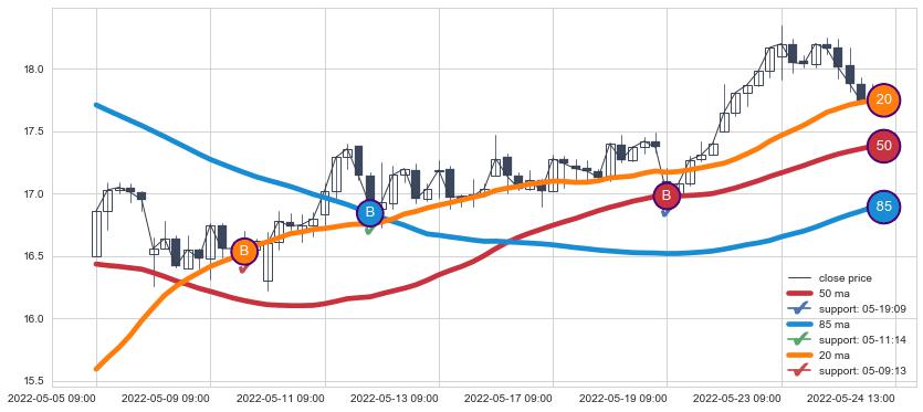 ⚂ 2022-05-19 11:00:00小时突然冒出一根大阳线,一下子顶穿三条均线且收盘价收在各条均线之上