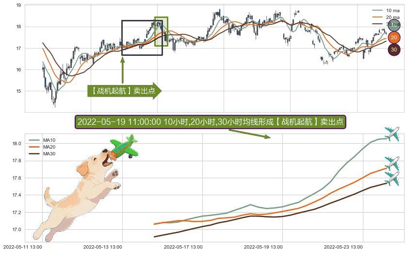 ⚀ 2022-05-16 11:00:00小时-2022-05-24 10:00:00小时显现 10小时-20小时-30小时均线 【战机起航】卖出点 看空信号,后市看跌,卖出