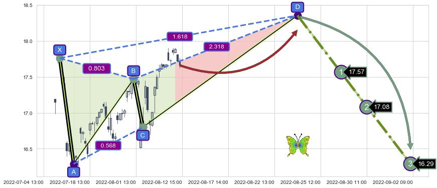 ➣ 未完成【蝴蝶】形态起点X: 07-07:14, 已到达C点: 08-02:14, 预测最终D点: 08-24:09, 共102交易小时